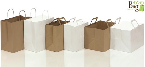 שקיות נייר ידיות מלבן 35/25+23 קרפט לבן